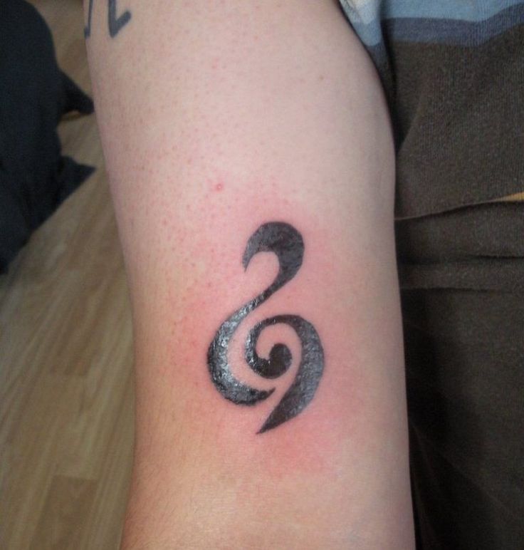 1. Басовый ключ с нотой соль. Люди с такой татуировкой связаны с такими музыкальными инструментами как скрипка, пианино или же духовые.