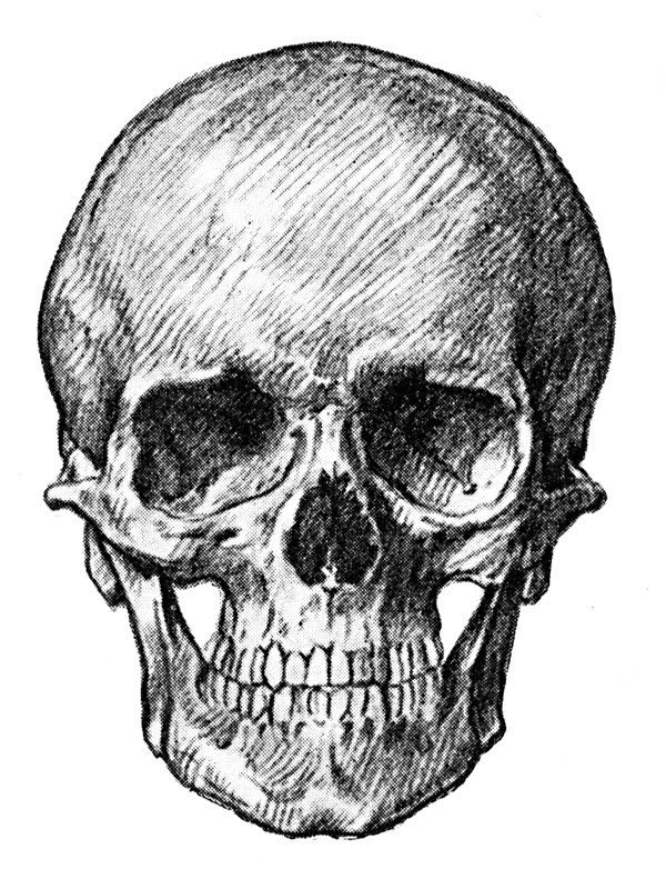 с изысканной круглой огранкой в центре с двумя черепами по бокам, окруженными причудливо переплетенными виноградными лозами и камнями, спускающимися вниз по ленте.