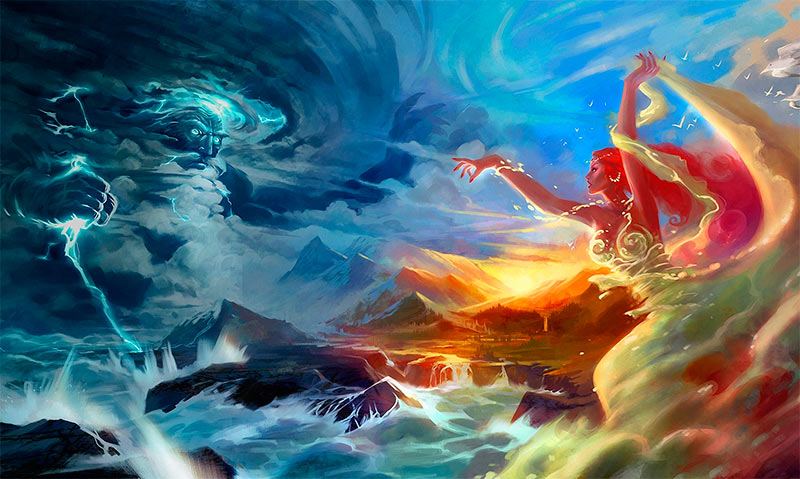 Древние, похоже, не делали различий между ними, и, вероятно, поэтому слова «молния» и «удар молнии» существуют, несмотря на то, что они являются синонимами. Боги бури, как правило, мужчины (особенно боги молнии/грома), сильные и вспыльчивые (вспыльчивость, вероятно, является чертой характера из-за власти над громом/молнией, поэтому власть бога над этим аспектом природного мира влияет на его личность). Божества дождя и ветра, как правило, не изображаются такими гневными, как божества грома/молнии.