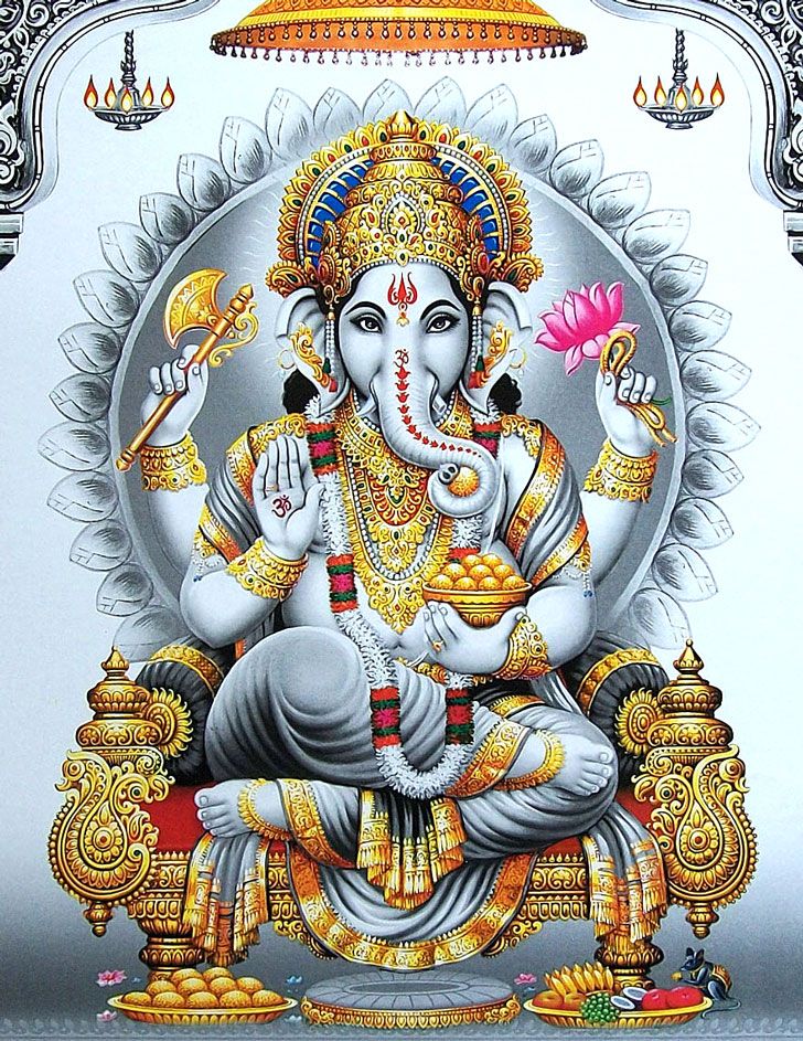 Многим известно божество индуистского пантеона – Ганеша, пузатенький человек со слоновьей головой. Он изображен с единственным бивнем, четырьмя руками, в одной из которых сжимает собственный хобот – как пример самодисциплины, в другой – книгу, образец знаний.