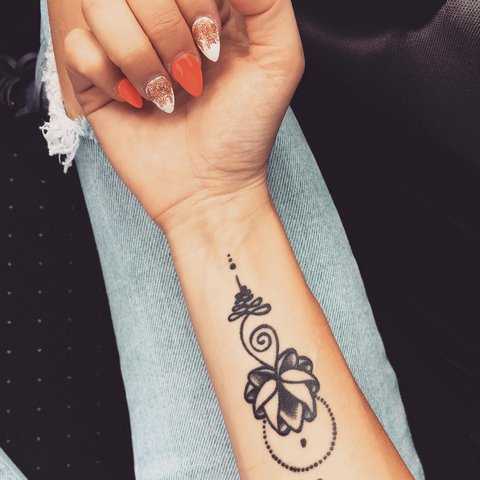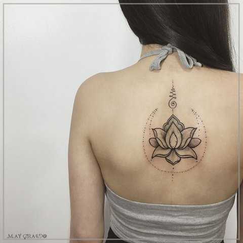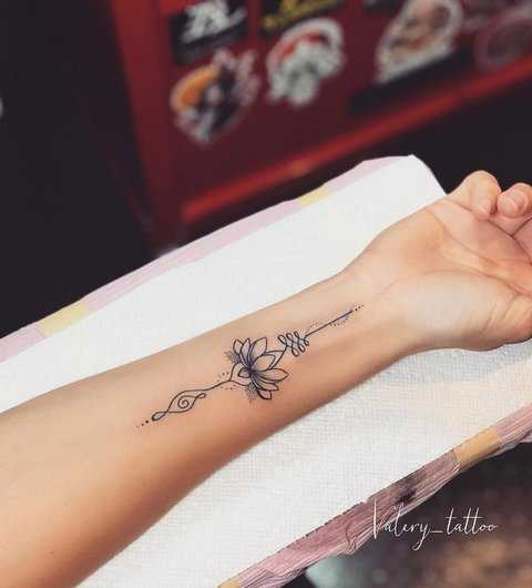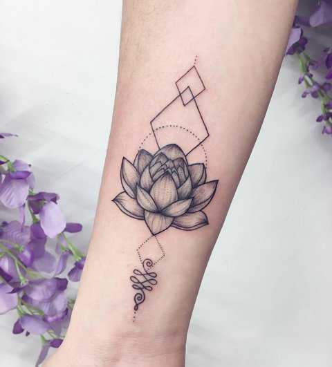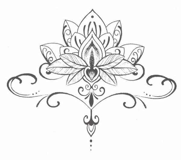 Как и у любой тату, определенного места нанесения лотоса нет и быть не может. Ее расположение и форма изображения цветка зависит от личного желания хозяйки. Профессиональные мастера предлагают своим клиенткам эскизы лотоса с восточными узорами на лепестках, в минималистическом стиле или графику.