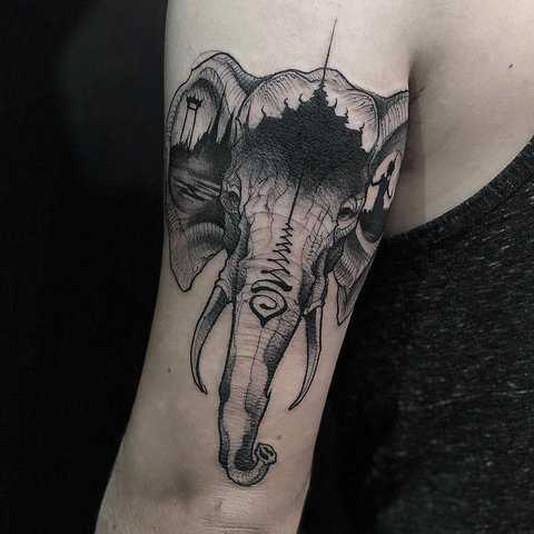 Очень серьезным и положительным символом буддистов является слон. Конечно, для нашей страны выбор данного животного в качестве рисунка на теле может выглядеть немного странно, но в восточных странах слоны весьма почитаемы и любимы. Эти большие, сильные и дружелюбные животные имеют невероятную энергетику и мощь. Изображая на теле голову или полную фигуру слона, человек желает приобрести или усилить в себе такие качества: достоинство, волю и любовь к окружающим людям.
