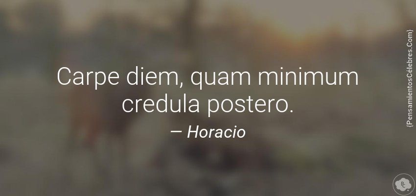 Это часть предписания Горация «carpe diem quam minimum credula postero» (перевод: «срывай день, как можно меньше полагаясь на следующий»), которое появляется в его Одес (23 г. до н.э.).