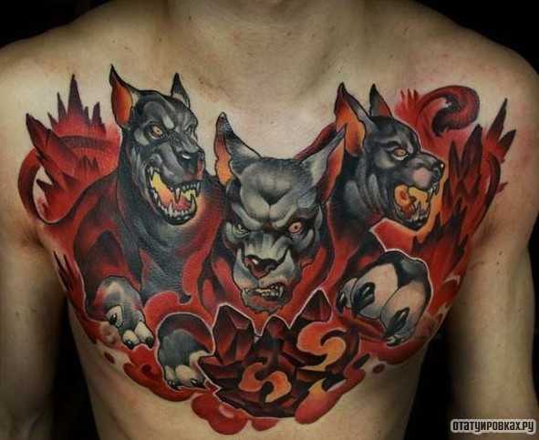 Носитель татуировки с изображением Цербера может увлекаться мифологией, оккультными науками, черной магией. В этом случае, нательный рисунок несет в себе мистический смысл. Его обладатель, зачастую, представляет загадочную, коварную и хладнокровную личность, которая вызывает недоверие и отторжение.