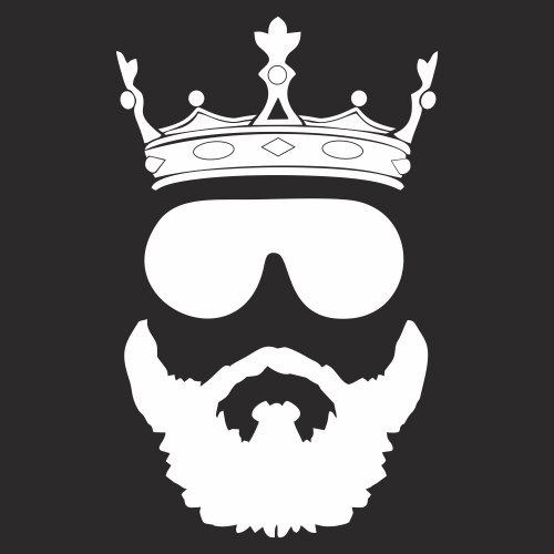 Королевская корона, усы и борода на белом фоне логотипа с типографским векторным рисунком.PREMIUM