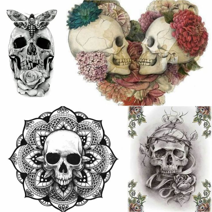 Изображения черепа большинство считают страшными и пугающими, однако их можно подобрать под любого человека, при этом каждый вариант будет иметь свое значение. Эскиз черного или серого оттенка чаще всего означает силу и смерть. Вариант красочного черепа с сердечками вместо глазниц, выглядит нежно и привлекательно.