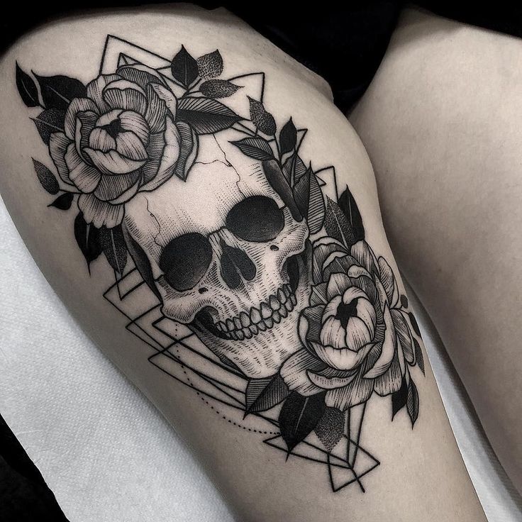 Женщинам череп набивается зачастую на руке, бедре. Для девушек тату может значить рвение к вечной красоте, перерождению. Женщины любят украшать кожу красочными черепами с яркими цветами или орнаментом.