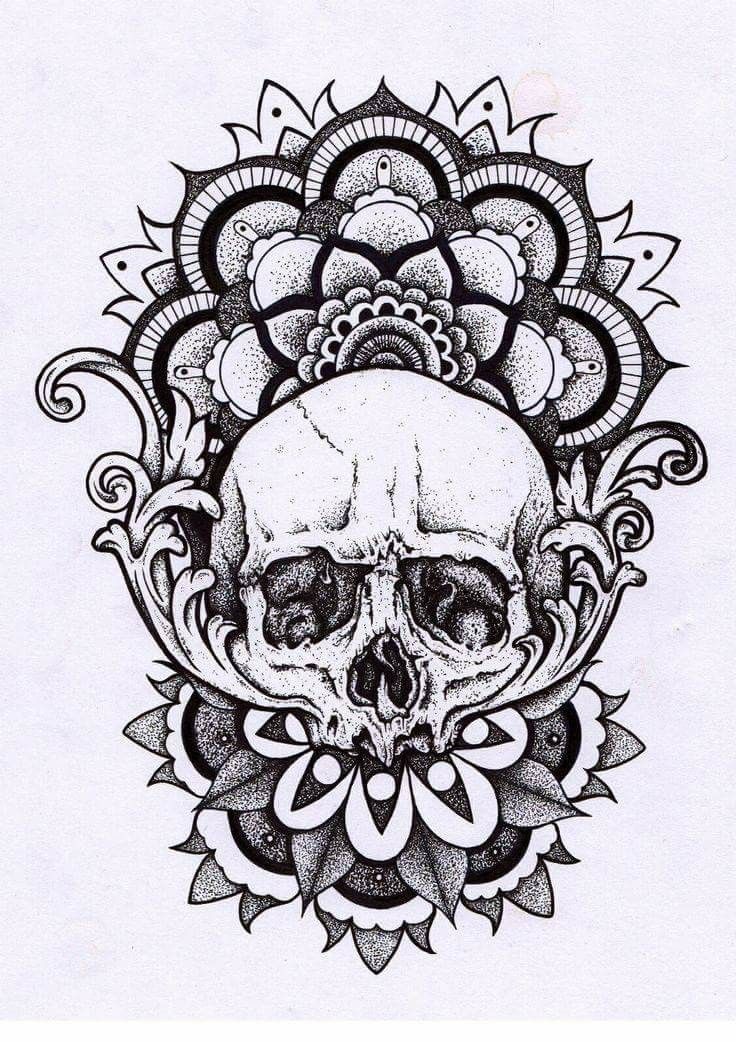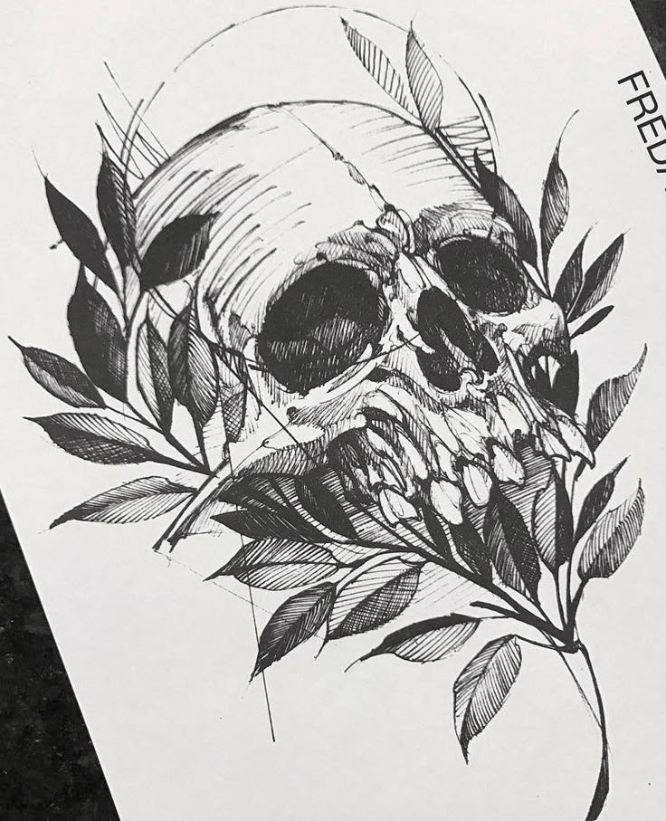Рисунок, выполненный в виде черепа, может быть любого размера, цветной или классический черный, пугающий или забавный.