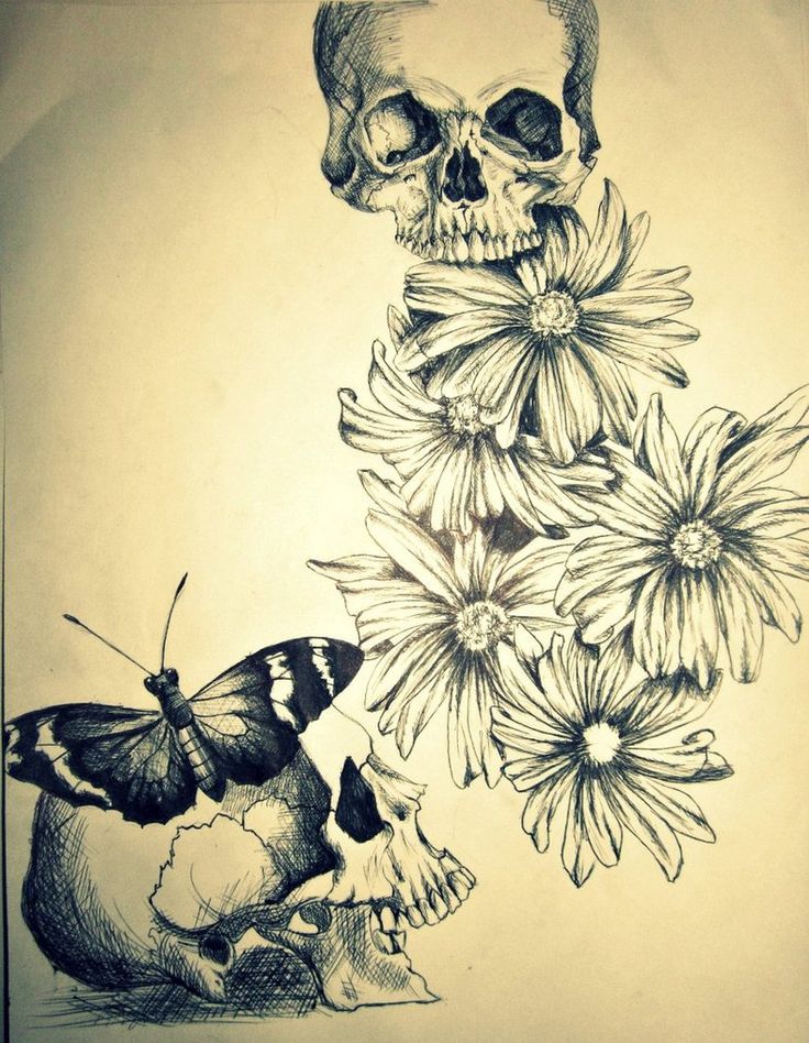 Сначала у вас есть череп. Многие посмотрят на изображение черепа и предложат худшее. На самом деле, многие люди делают татуировку черепа, чтобы представить смерть и ужас. Мы всю жизнь видели черепа в фильмах и книгах, и обычно это вращается вокруг страшных вещей.