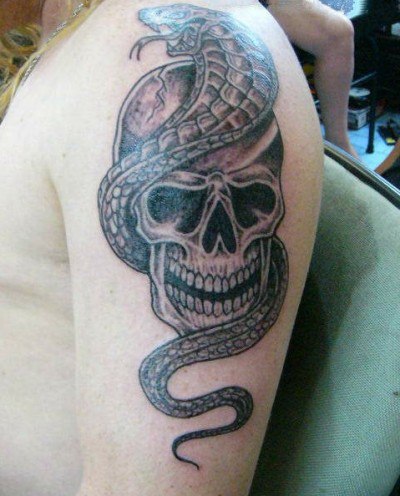 - Змеи (иногда это клубок змей) рядом с черепом — знак бессмертия, интеллекта и знаний.