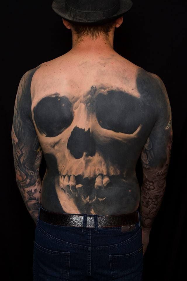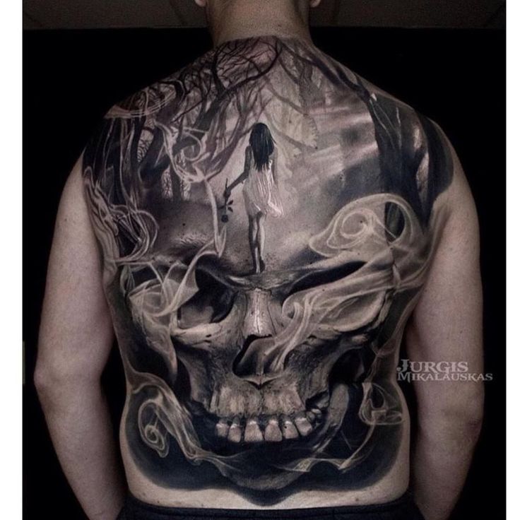 Не могу поверить, что он сидел как чемпион! 56 часов спустя…..полная спина! Проверьте мой IG для большего количества татуировок! #skulltattoo #backpiece #tattooartist