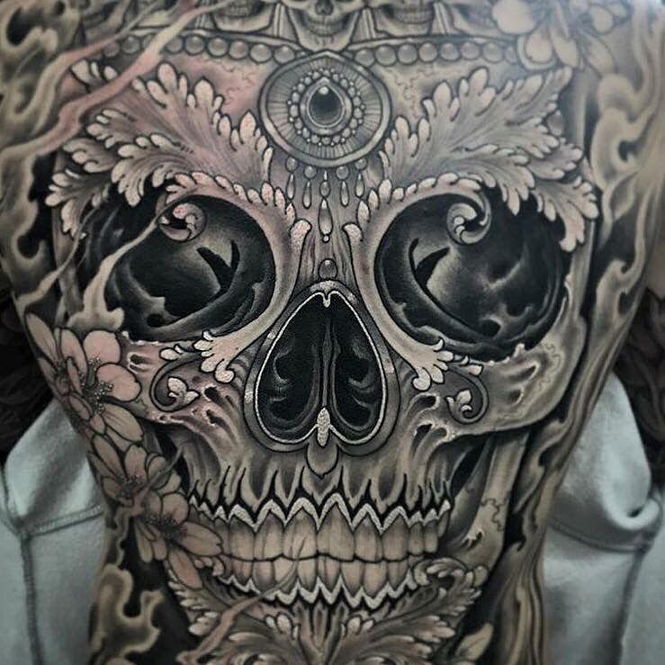 Это очень стильное место для татуировок, особенно для мужчин. Из-за природы сахарного черепа вы можете расположить его на спине практически так, как вам нравится, и он все равно будет выглядеть потрясающе. Вы можете сделать эту татуировку между плечами, поперек спины или даже посередине спины.