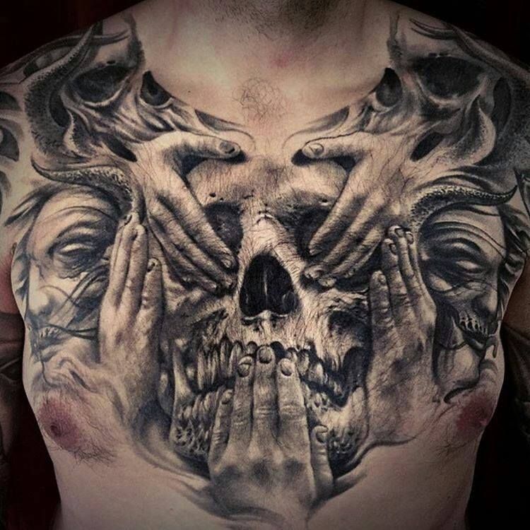Это самое привлекательное место для татуировки сахарного черепа для мужчин. Даже дамы могут отлично выглядеть, если найдут креативного художника, который нанесет им татуировку. В груди места более чем достаточно, так что можно набить даже огромные татуировки.