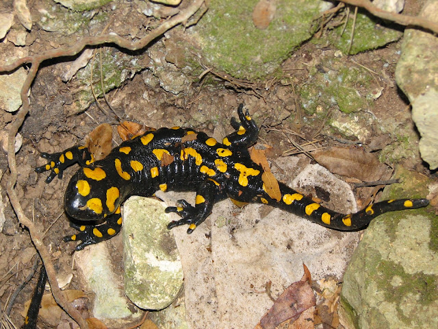 С октября огненные, желто-черные пятнистые саламандры обычно перебираются на зимовку, прячась между корнями деревьев, под камнями или в норах, часто большими группами.