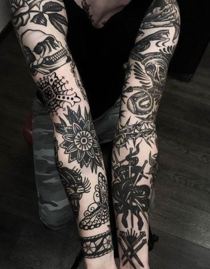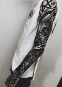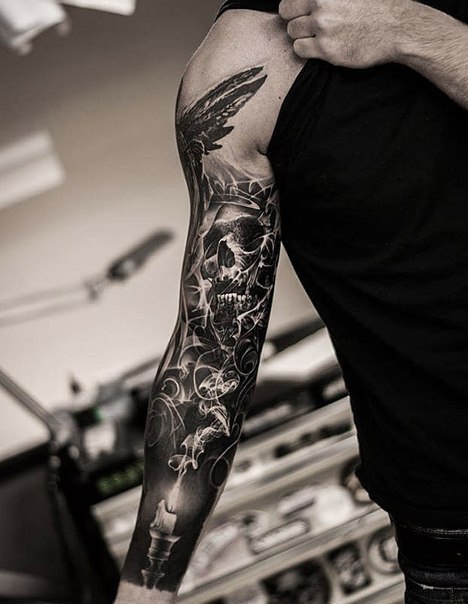 Крупные тату смотрятся всегда вызывающе, а общество порой осуждает их наличие на теле человека. Что касается тату рукав черно белый, то здесь ситуация усугубляется излишней мрачностью цветовой гаммы.