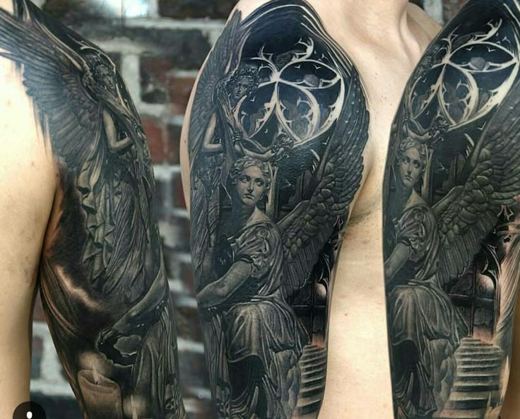 Сплошные черные тату-рукава сзади или спереди