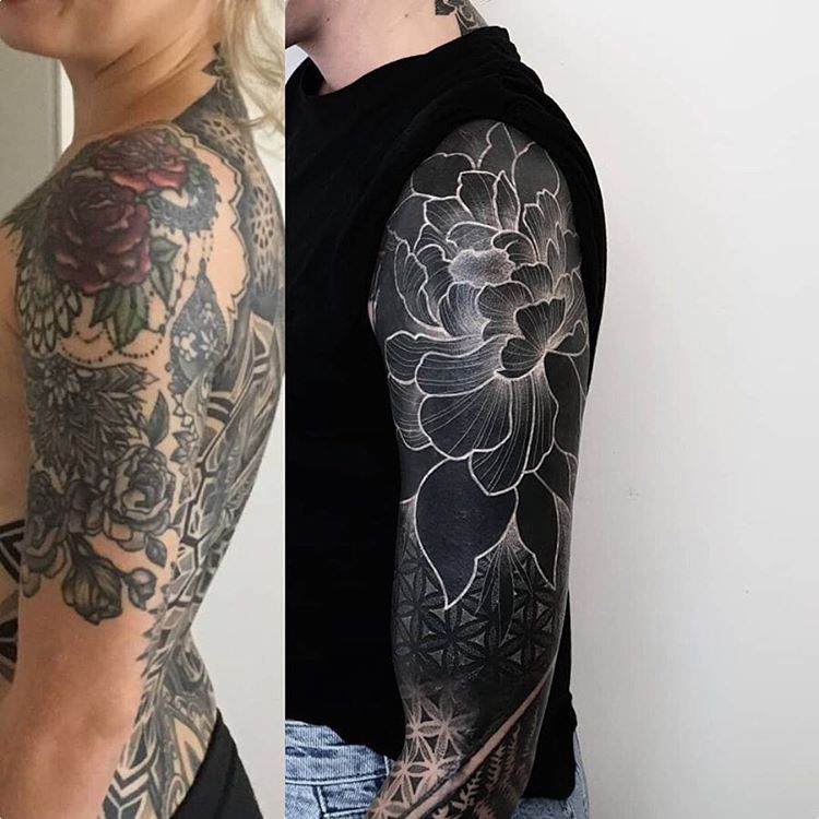 Этот вариант выбирают самые ярые поклонники чернил. Полностью черный рукав татуировки покрывает всю спину или, по крайней мере, большую ее часть. Несколько человек также выбрали этот дизайн кожи на лицевой стороне, скрывая ее частично или полностью.