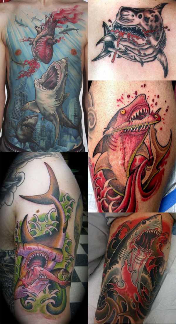 Но татуировки с акулами могут быть разных видов: спокойно плы