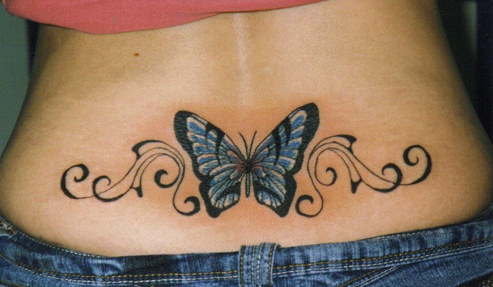 Картинка бабочки очень симметрична, а центр татуировки очень легко выровнять по позвоночнику, раскидав крылья по разные стороны от него.