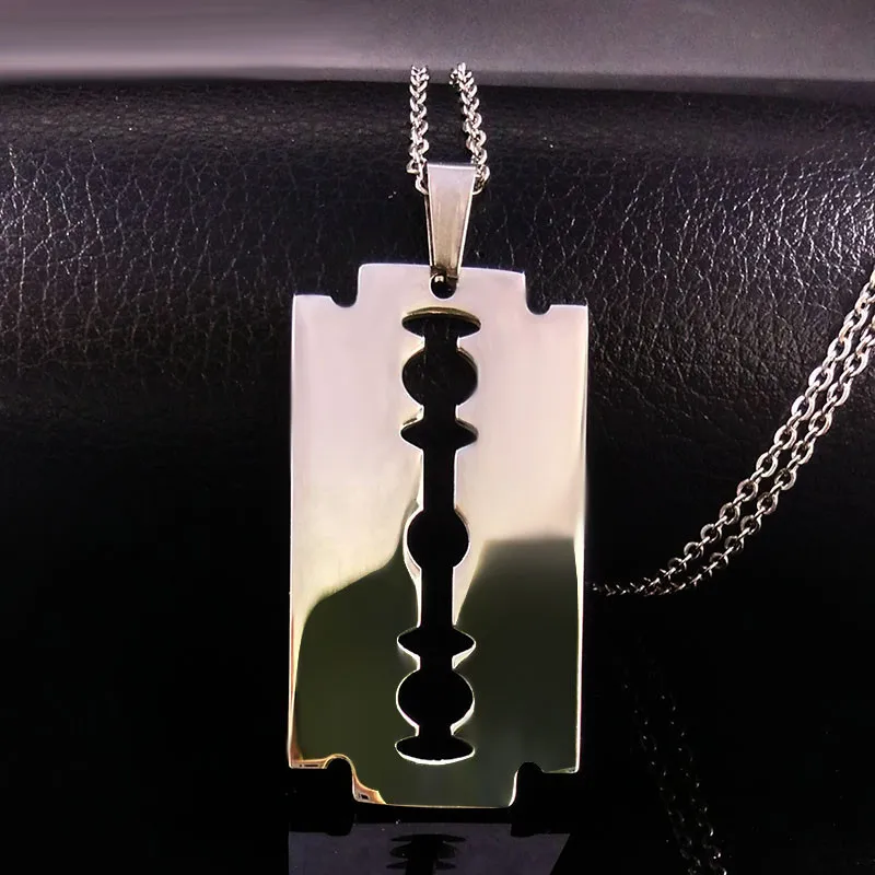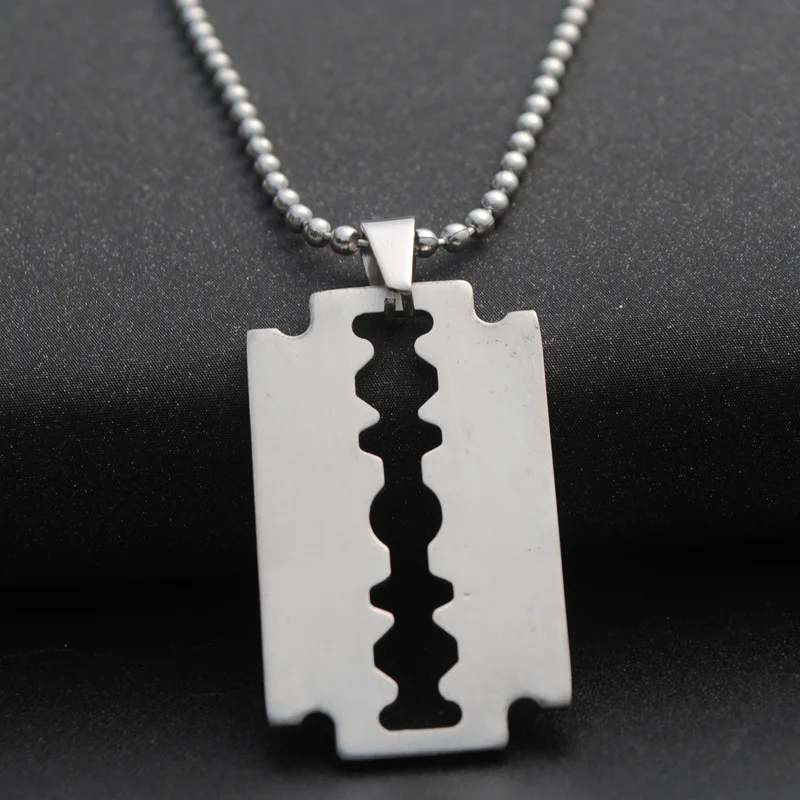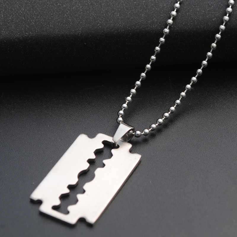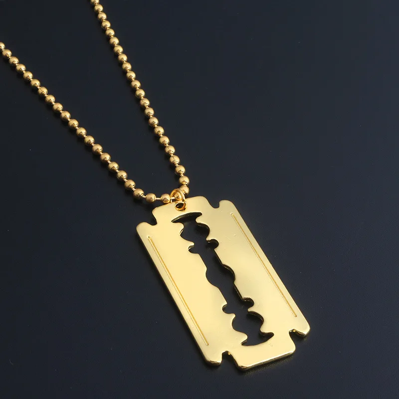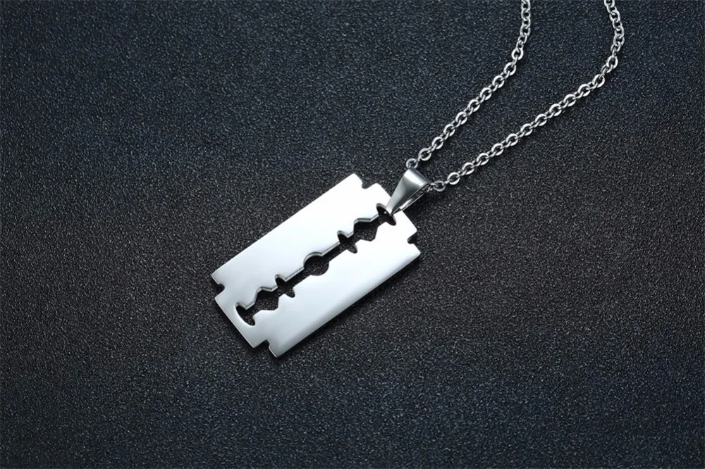 Когда я был подростком — конец 80-х, начало 90-х — ожерелье с лезвием бритвы было модным. Вы, наверное, видели их раньше. Вы начинаете с ожерелья-цепочки и прикрепляете что-то похожее (но, вероятно, не являющееся на самом деле) обоюдоострым лезвием бритвы. Вуаля! Мгновенный «дерзкий» модный аксессуар в стиле «панк-рок». Поиск картинок в Google даст более конкретные результаты, если вам все еще трудно это представить.