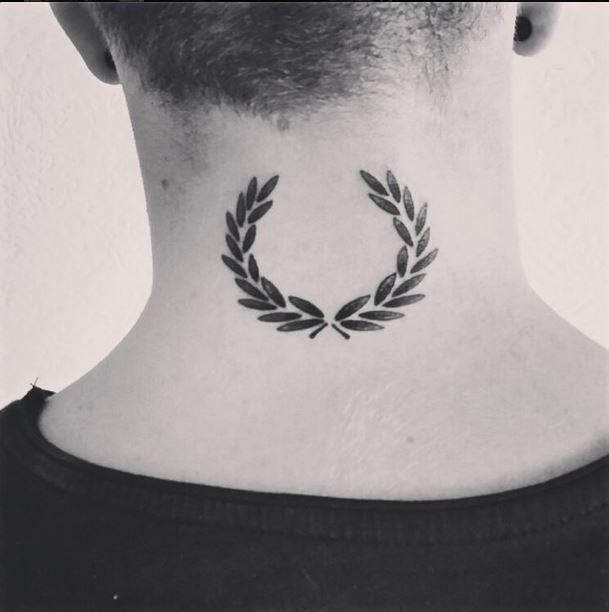 Лавровый венок считается в большей степени мужским символом, поэтому эскиз желательно выбирать в черно-белых тонах. Можно остановить свой выбор на стиле графика. Он достаточно простой и лаконичный, но в то же время современный. Изображение выполняется только с помощью черных чернил и штриховки. Для небольшого рисунка подойдут внутренняя часть руки, запястье, грудь, шея, щиколотка.