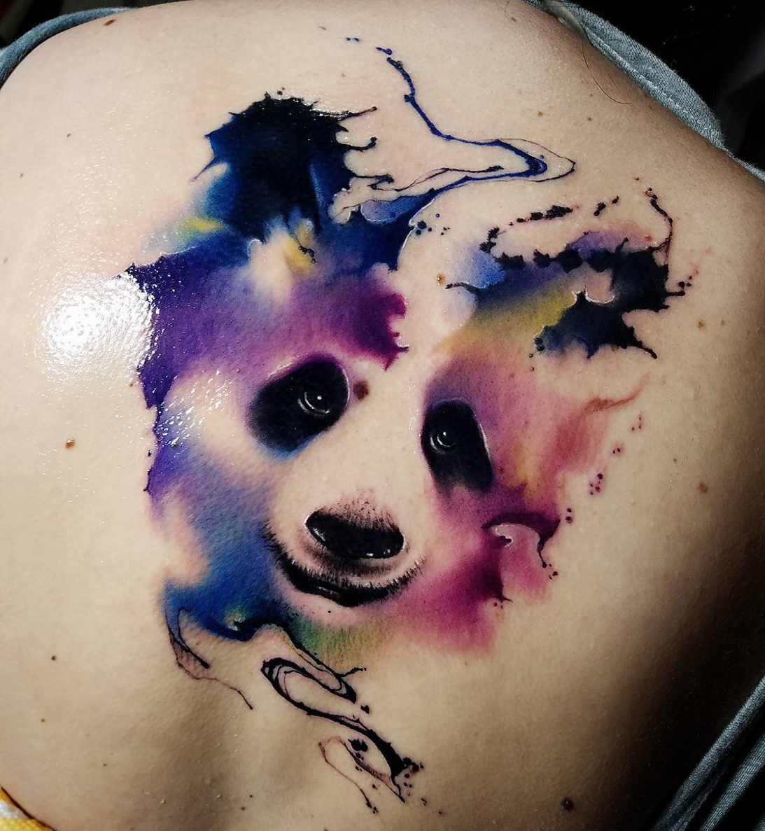 Различные вариации классической татуировкой панды характеризуют владельца как выдающуюся личность. Например, цветная панда проявляет яркость и характеризует позитивность своего владельца.Различные элементы декора говорят о многогранности личности, а довольно необычные решения характеризуют юный дух и некоторую несдержанность обладательницы татуировки.