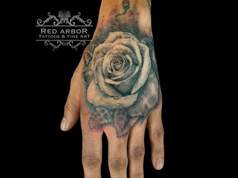 На предыдущем изображении вы можете видеть татуировку, сделанную на всей руке мужчины, которая продолжается в руку с очень особым дизайном. Татуировка на руке представляет собой розу, выполненную черными чернилами с продолжением теневых деталей на пальцах.