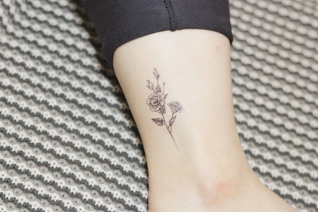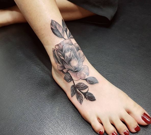 татуировка розы на щиколотке и ступне
