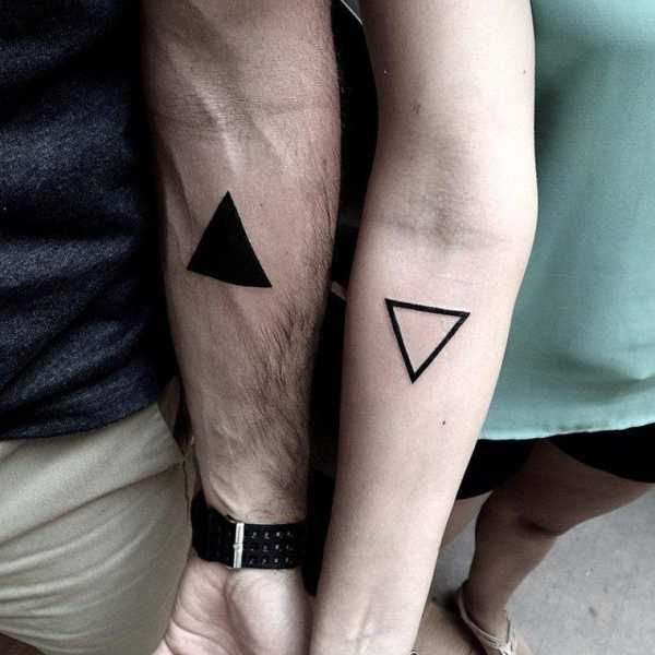 В наше время татуировки делаются еще в качестве увековечивания своей любви к другому человеку. Таким образом, делаются также и парные эскизы треугольников для влюбленной пары, которая уверена в своих чувствах.