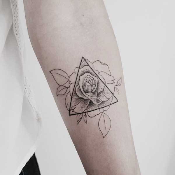 В принципе, треугольник набивать можно где угодно, никакую часть тела он своим присутствием не испортит, так что вы смело можете набивать такую тату и на руках, и на ногах, включая бедра и голени, и на шее, где аккуратный небольшой треугольник также будет элегантно дополнять любой ваш образ. Значение тату треугольника на руке может быть другим, ровно как и на других частях тела. Так что думайте сами, где набивать и чего вы больше хотите: придать смысл или просто подчеркнуть свою красоту.