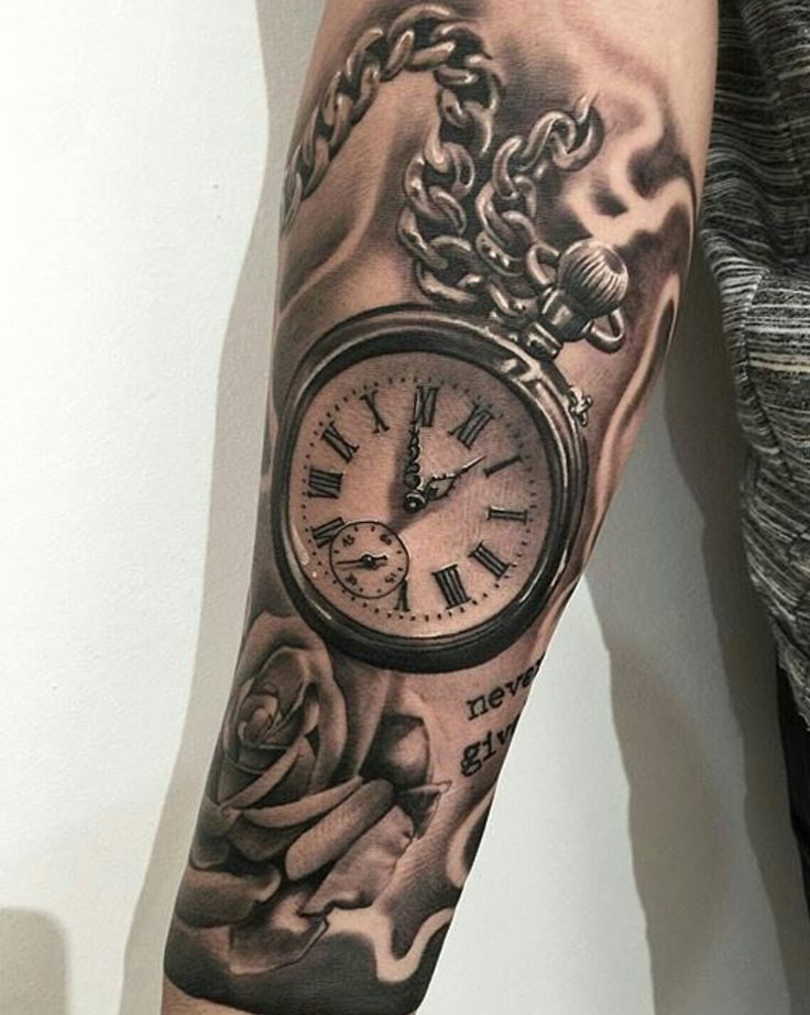 Татуировка с часами и розой — популярный дизайн в мире татуировок.