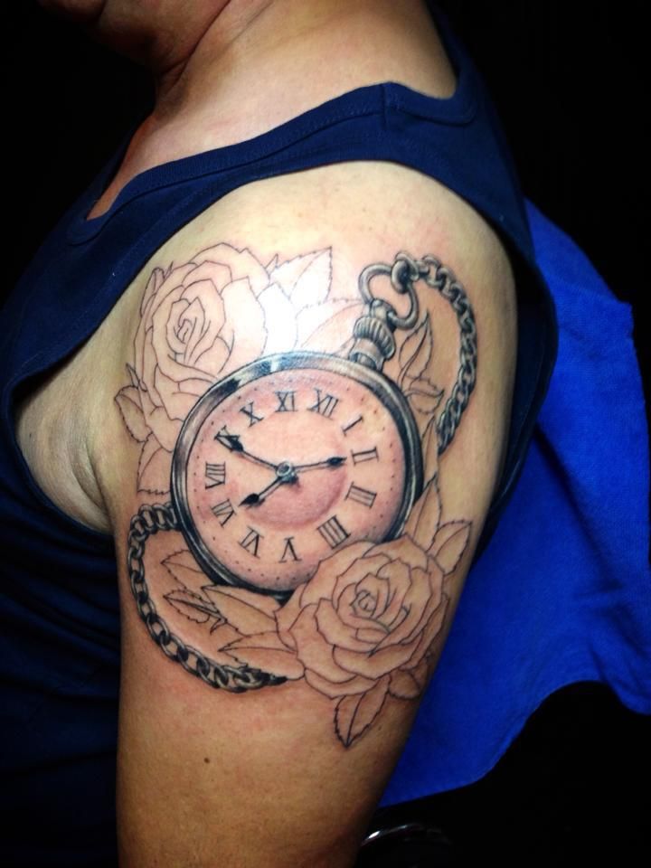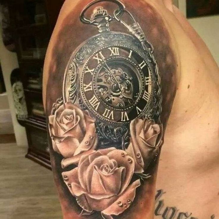 В татуировках часы довольно часто изображаются с розами. Эти цветы могут означать красоту, любовь или жизнь. Рисунок получается крайне символичным, ведь часы подчеркивают быстротечность жизни цветка, напоминая о том, как быстро проходит время.