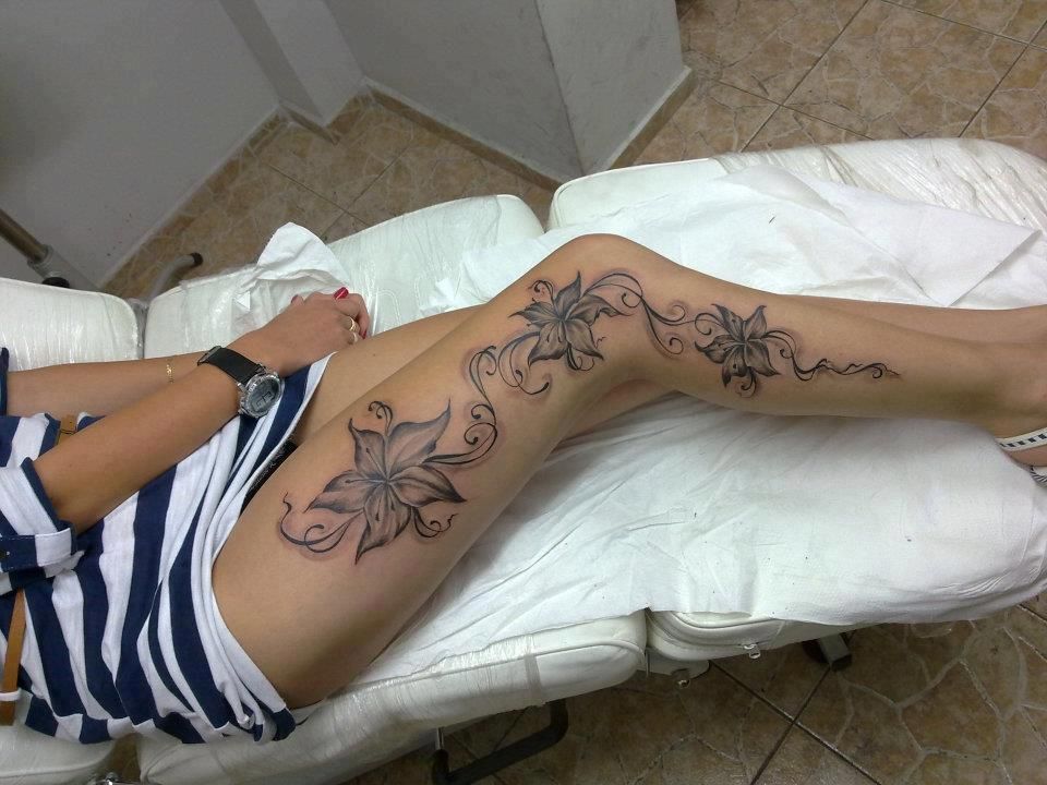 Цветы. Ну, какая же женщина не любит цветы? Поэтому они и не против украсить свое тело одиночным красочным цветком или целым разрастающимся прекрасным букетом. Вообще изображение и цвет несут свое символическое значение, например, белый является символом непорочности, а красный – любовные страстные чувства. Лотос и лилия традиционно означают счастье, благополучие и мир, а вот мак и ирис ассоциируются со смертью.
