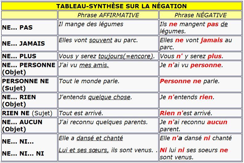 Это как jamais всегда «никогда». Так что отрицательную форму не так уж сложно перевести. Что важно, так это все значения слов здесь, а затем вы должны знать противоположную форму, но это как в английском обычно.