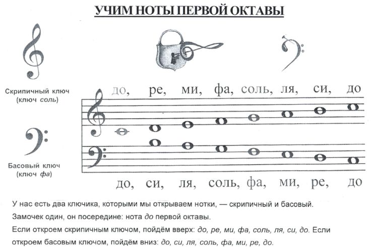 Расшифровка ключей: скрипичный, басовый, альтовый, теноровый