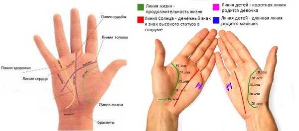 Примечание. Если первая линия имеет форму арки у женщины, это говорит о трудных родах или бесплодии (если на 2-м браслете такая же арка).