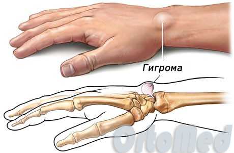 Гигрома представляет собой небольшой, грыжевой мешок с синовиальной жидкостью, который чаще образуется на тыльной поверхности лучезапястного сустава.