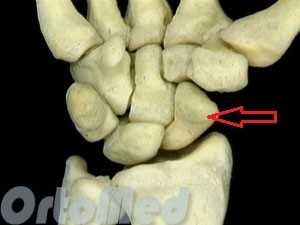 Сбоку к костям первого ряда через малоподвижный сустав присоединяется так называемая гороховидная кость, круглой формы и находящаяся в толще сухожилия. Она относится к сесамовидным костям, значение которых – действовать как рычаг и увеличить мышечную силу.
