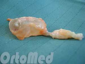 Удаление гигромы производится через небольшой доступ. Аккуратно отделяются окружающие ткани и гигрома иссекается. Но очень важный момент – это прошивание выходного отверстия, для того чтобы внутрисуставная жидкость оставалась в суставе. Рана зашивается. Накладывается стерильная повязка. Сустав фиксируется ортезом. Далее производятся ежедневные перевязки, обработка послеоперационной раны. Швы удаляются через 12-14 суток.