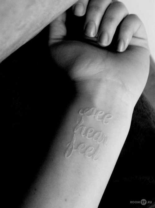 В последние годы самое распространенное место для тату — область запястья. В качестве тату на запястье обычно выбирается рисунок, но такие популярные в последние годы, различные надписи, подходят для этого места как ничто другое. Тату надпись на запястье (фото выше) может хорошо выразить индивидуальность человека.
