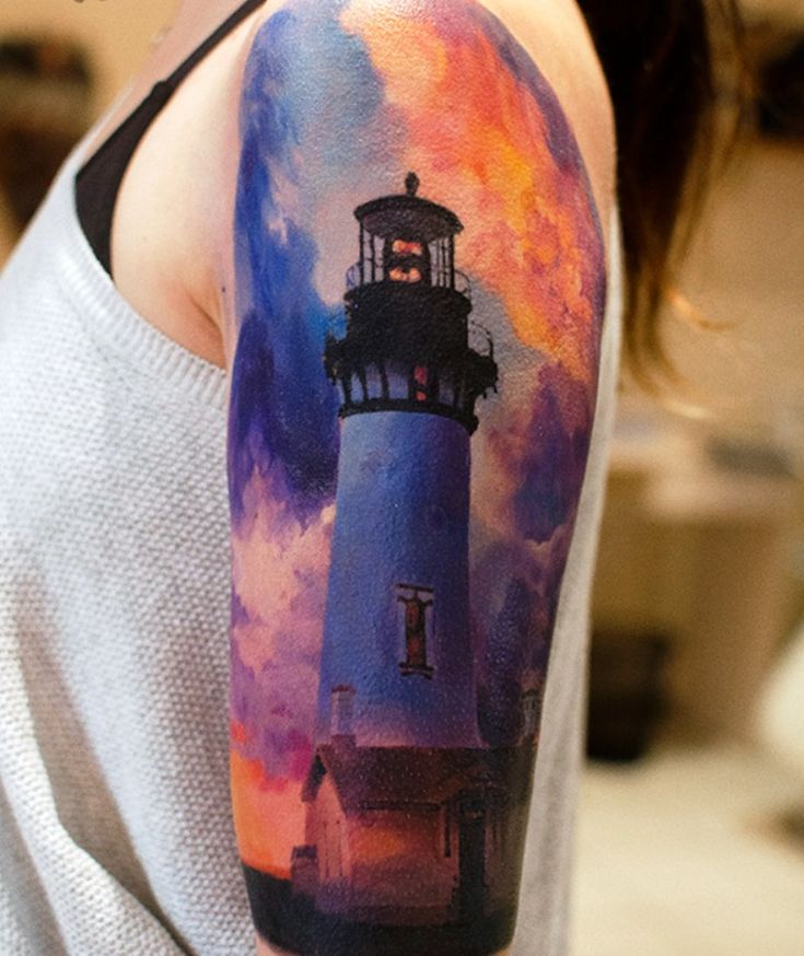 Тату маяк — не самый популярный символ для нательной живописи, однако дающий достаточно большой простор для фантазии. Рассмотрим подробнее значение татуировки маяк.