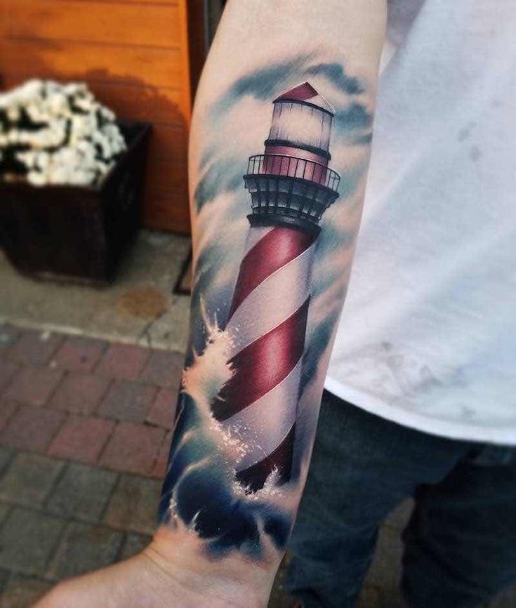 Татуировка маяк на руке — фото