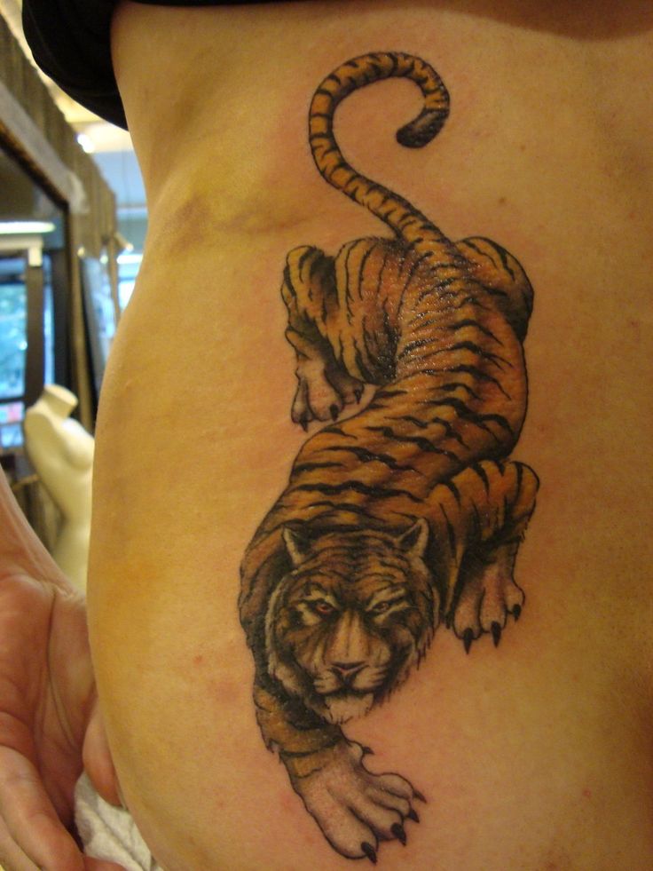 Тигр тату имеет значение силы духа и воли. Это символ агрессии и стремления получить власть любой ценой. В восточной татуировке изображает духа Бьякко .