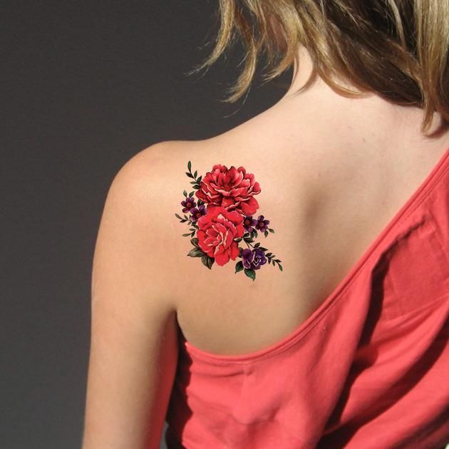 Выберите красочный цветок и несколько реалистичных рисунков татуировки бабочки для своего плеча, чтобы оно выглядело сексуальнее.