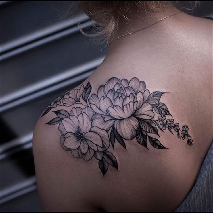 7. Тату пиона на плече Пион, король цветов, используется в праздновании больших и важных праздников. По этой причине эти цветы олицетворяют богатство.