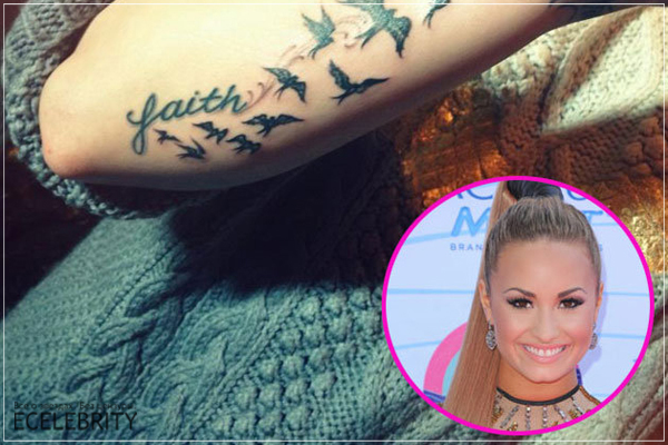 Деми Ловато также нанесла слово «Вера» на правой руке чуть ниже локтя. Это была одна из ее первых татуировок. Это также подходящая татуировка, которую она сделала со своей подругой Лорен Мартин. Она встретила этого друга в Timberline Knolls во время лечения.