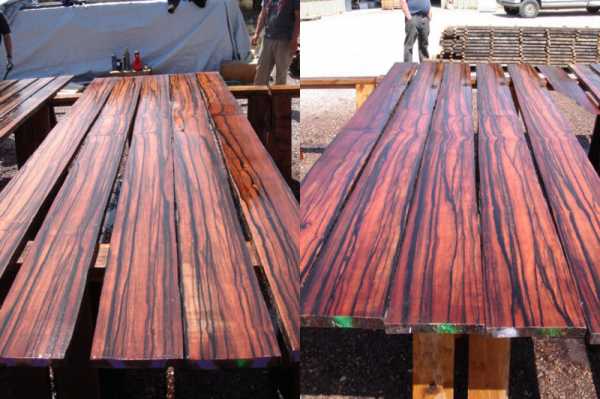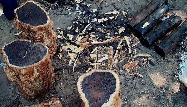 Сушка такой древесины – непростое дело. Если нарушить технологию, она сильно уменьшится в объеме. Поэтому в странах, где занимаются ее заготовкой, как и в древние времена, делают специальную предварительную подсечку за 2 года до вырубки. Она производится таким образом: по кругу у основания ствола подсекают слои заболони, для того чтобы приостановить рост дерева.
