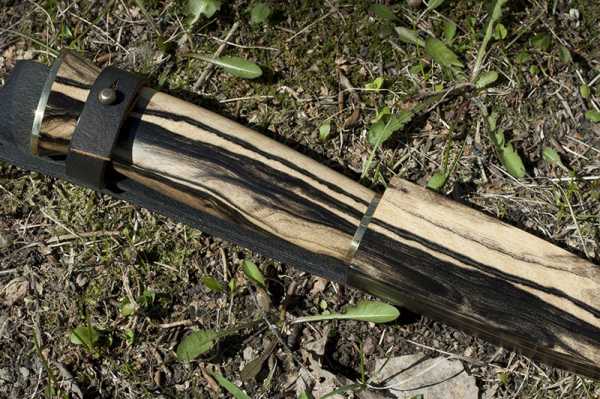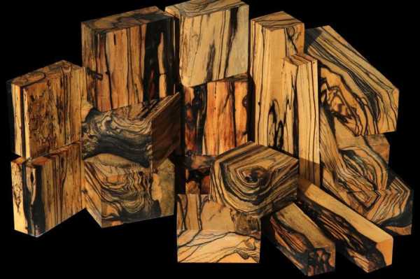 Макассар, или эбеновое дерево из Юго-Восточной Азии, имеет ядро с черными коричневыми, красно-коричневыми, иногда бежевыми полосами.