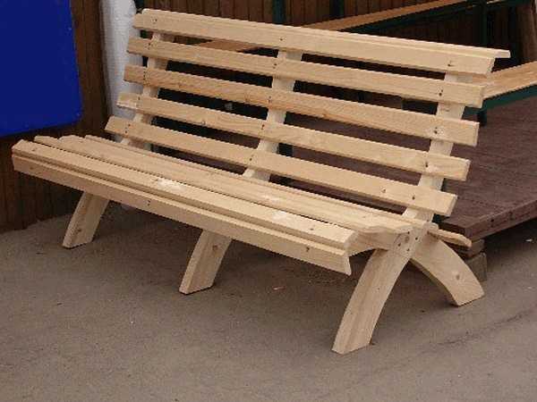 - Чтобы изготовить из дерева нашу замечательную поделку, кладём два бруска параллельно друг другу. Сверху выкладываем 6 досочек с одинаковым расстоянием между ними и скрепляем их саморезами.