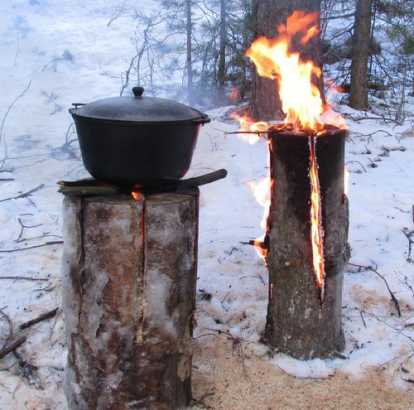 - Ждём пока огонь сам сделает ножки для табурета и тушим его.